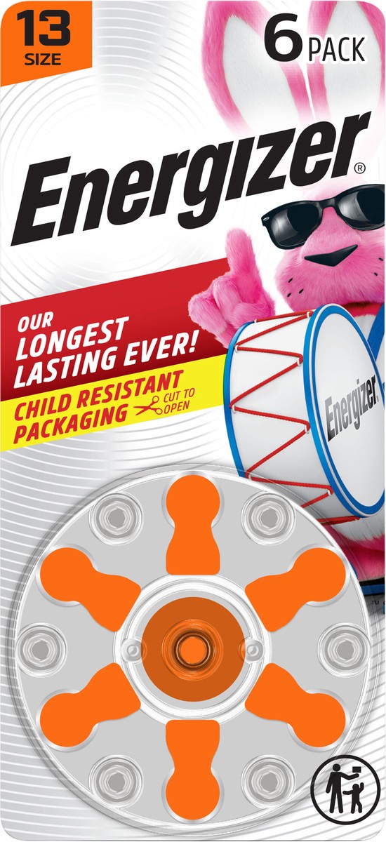 Energizer Hearing Aid Batteries Size 13, Orange Tab, 6 Pack