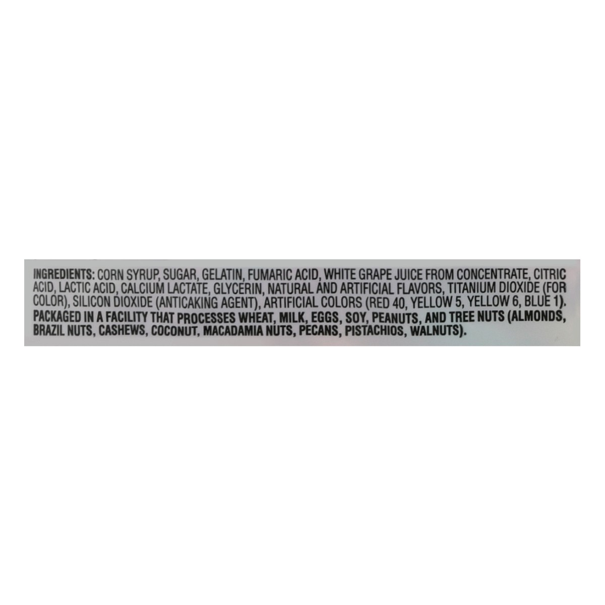 Corn Syrup, Sugar, Gelatin, Fumaric Acid, White Grape Juice from Concentrate, Citric Acid, Lactic Acid, Calcium Lactate, Glycerin, Natural and Artificial Flavors, Titanium Dioxide (for Color), Silicon…