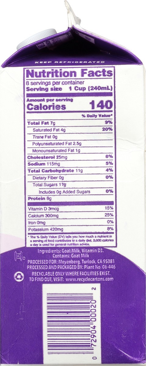Meyenberg Fresh Whole Goat Milk - 64 Fl. Oz.