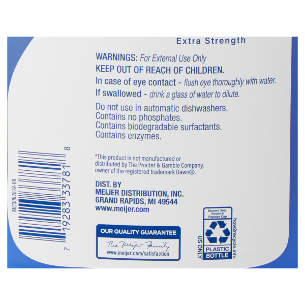 Use Meijer Liquid Dishwashing Detergent Extra Strength to get your hard to clean dishes and pans clean. Compare to Dawn® Ultra
