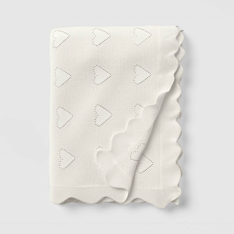 Valentine's Day Heart Knit Throw with Scalloped Trim Ivory - Threshold™