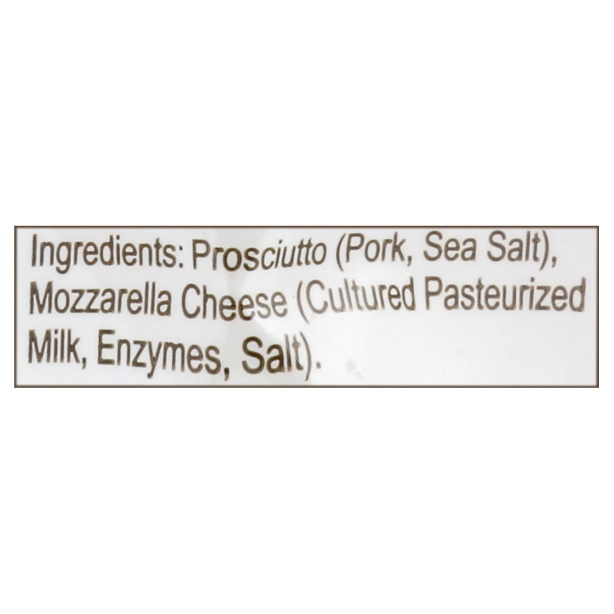 Prosciutto (Pork, Sea Salt), Mozzarella Cheese (Cultured Pasteurized Milk, Enzymes, Salt).