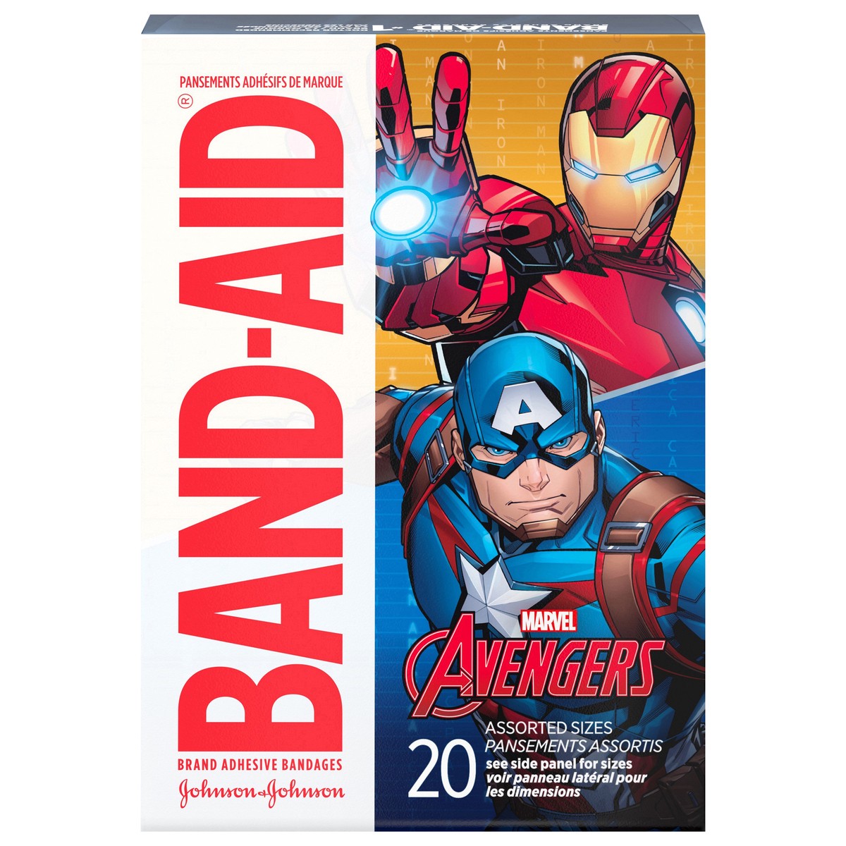 Band-Aid Brand Adhesive Bandages for Minor Cuts & Scrapes, Wound Care Bandages Featuring Marvel Avengers Characters, Fun Decorative Bandages for Kids & Toddlers, Assorted Sizes, 20 ct