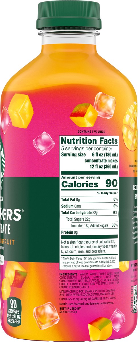 Elevate your refreshment with Starbucks Refreshers® Concentrate. Crafted with layers of bold, fruit- forward flavor and a gentle lift from green coffee extract, it's an uplifting boost that's as vibra…