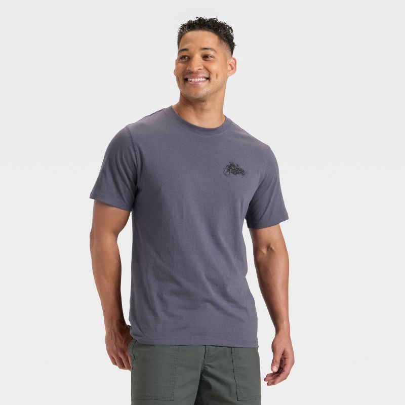 Stay cool and comfy in this Graphic T-Shirt from Goodfellow & Co™. Made from cotton-recycled polyester blend fabric, this short-sleeve T-shirt features a small motorcycle graphic on the front and a la…