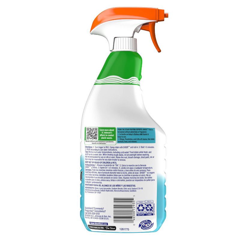 Shout Gentle Fabric and Laundry Stain Remover Spray - Fragrance & Dye Free - 22 fl oz