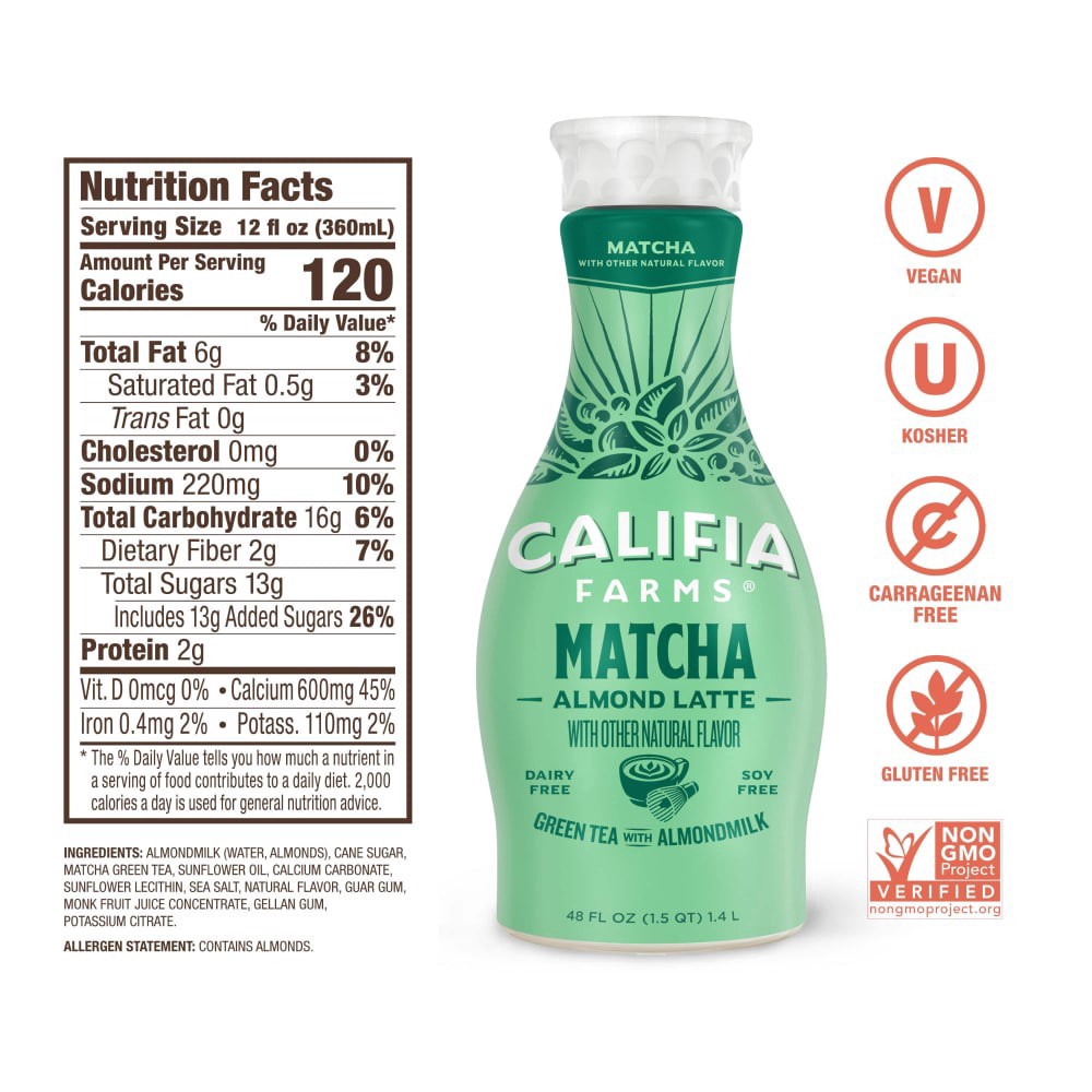 Califia Farms Matcha Almond Milk Latte Green Tea Beverage - 48 fl oz