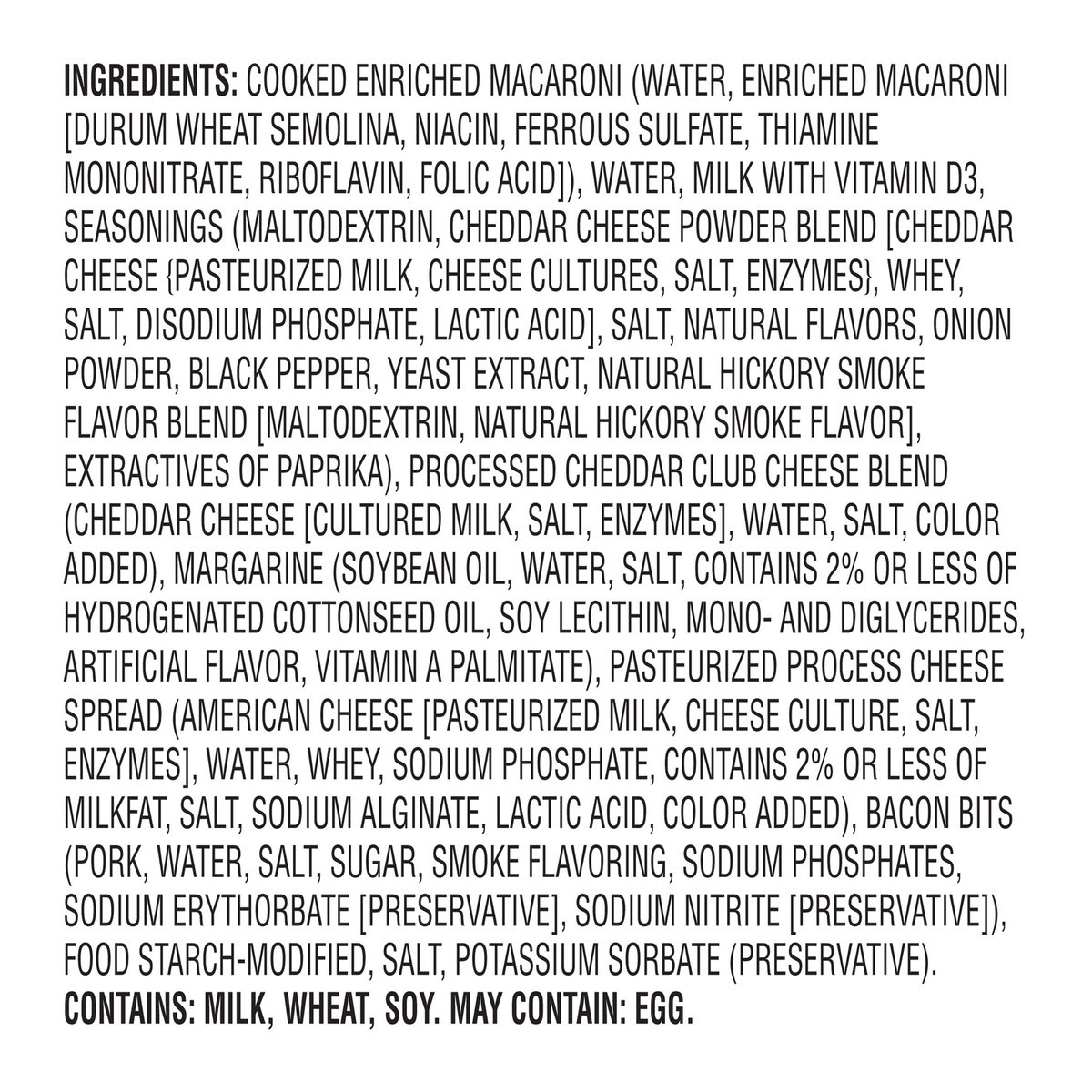 Macaroni noodles tossed in indulgent, real cheese and bacon with a savory hickory smoke flavor and black pepper spice seasoning