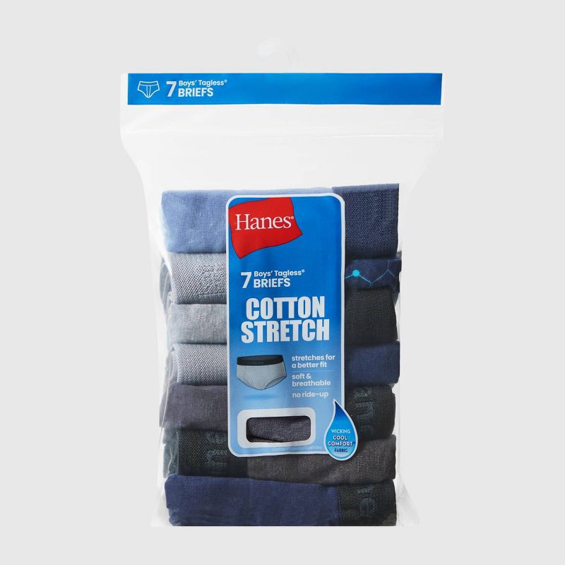Busy school day? Weekend adventure? Either way, this seven-pack of Hanes boys underwear briefs makes getting dressed one less thing to think about. These cotton-stretch briefs for boys are made from s…