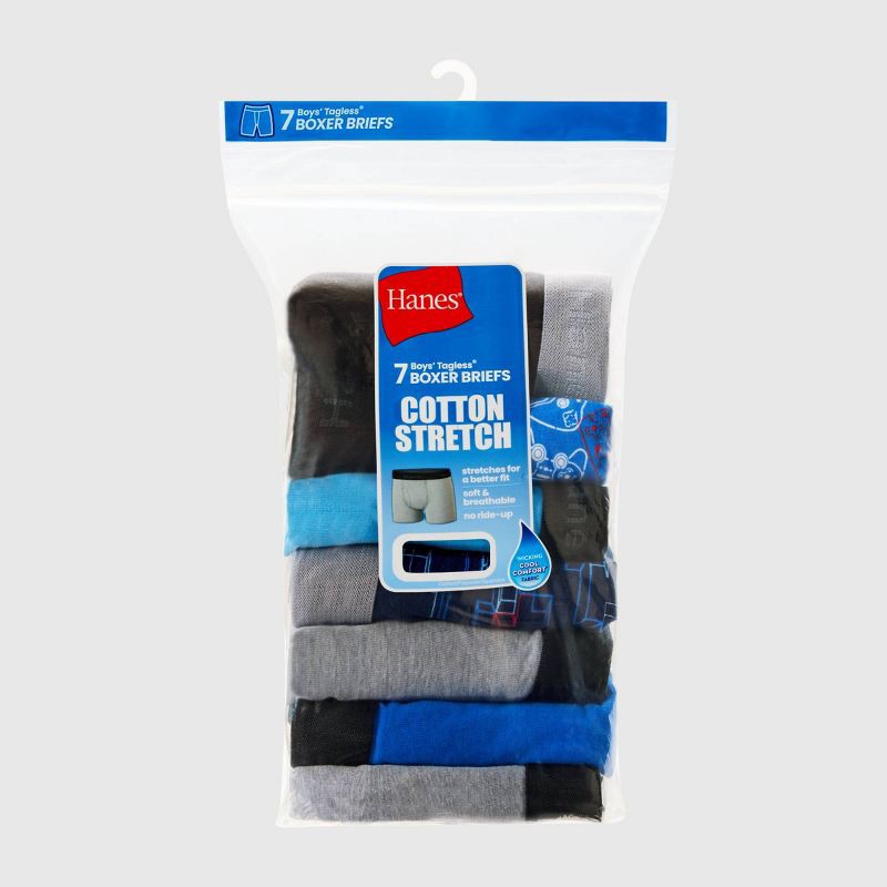 - BOYS UNDERWEAR VALUE PACK - Stock up with this seven-pack of Hanes boys underwear. These boys boxer briefs give him a fresh pair for every day of the week and make laundry days easier for parents.