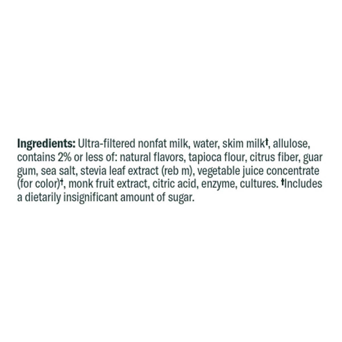 Ultra-Filtered Nonfat Milk, Water, Skim Milk (Includes a Dietarily Insignificant Amount of Sugar), Allulose, Contains 2% or Less of: Natural Flavors, Tapioca Flour, Citrus Fiber, Guar Gum, Sea Salt, S…
