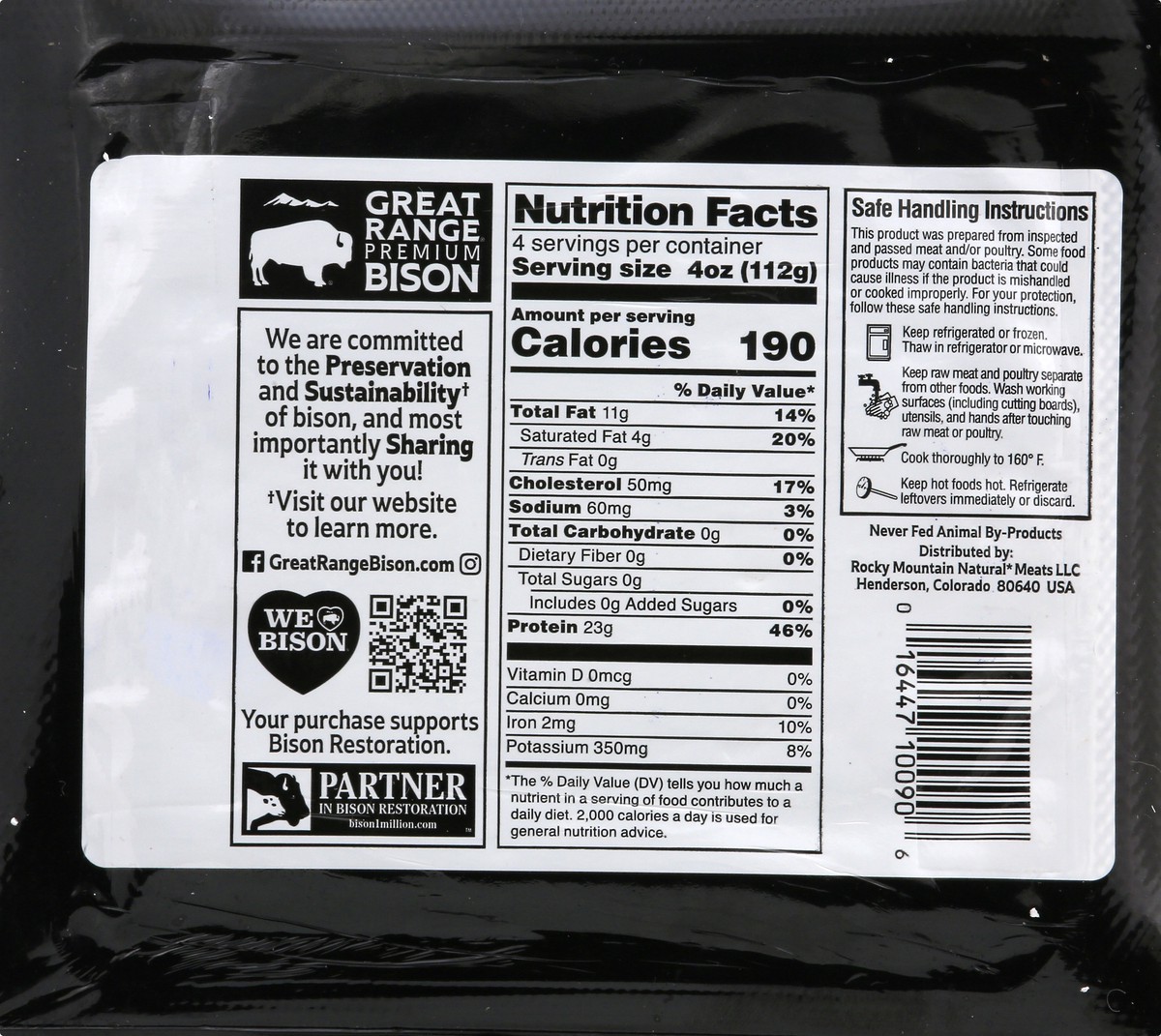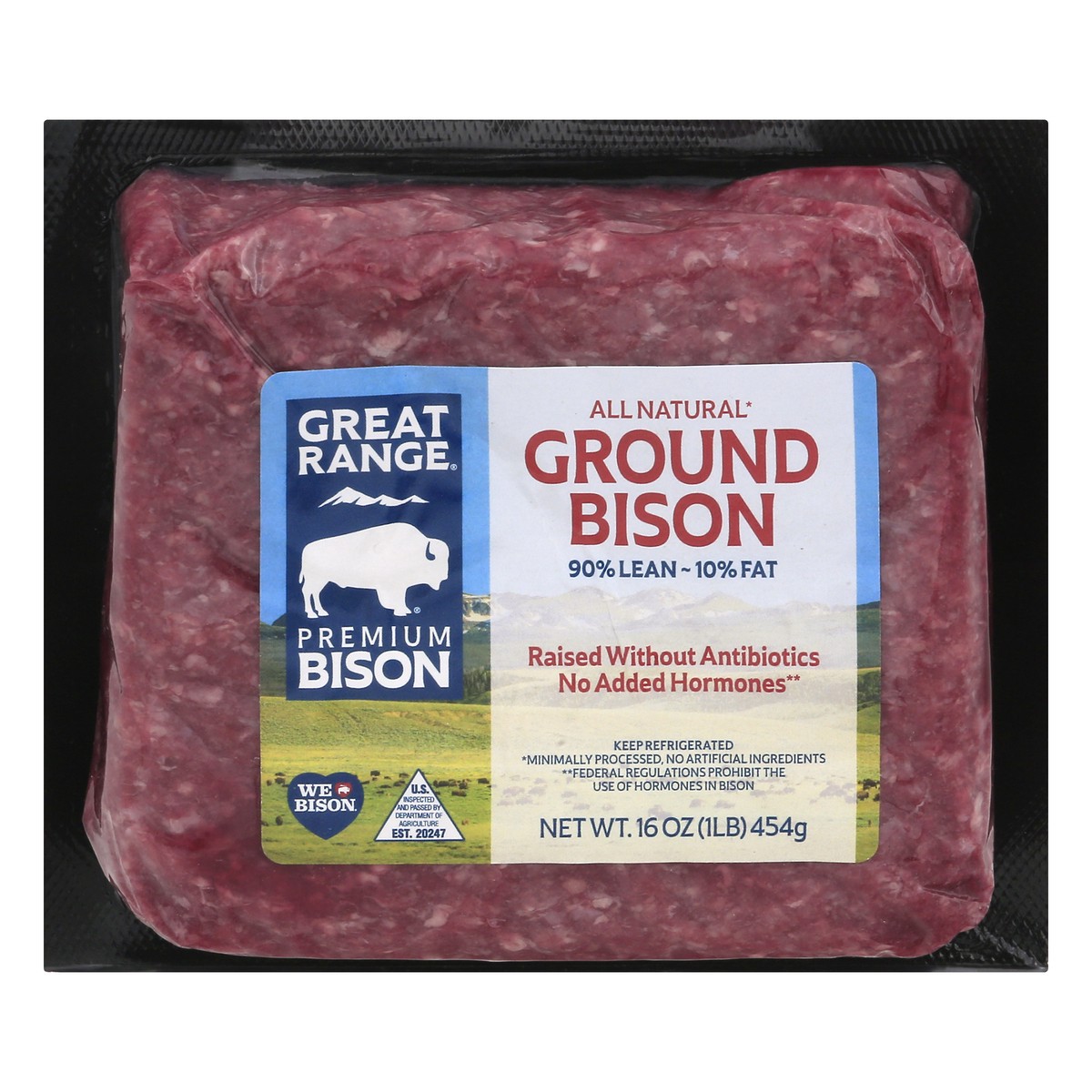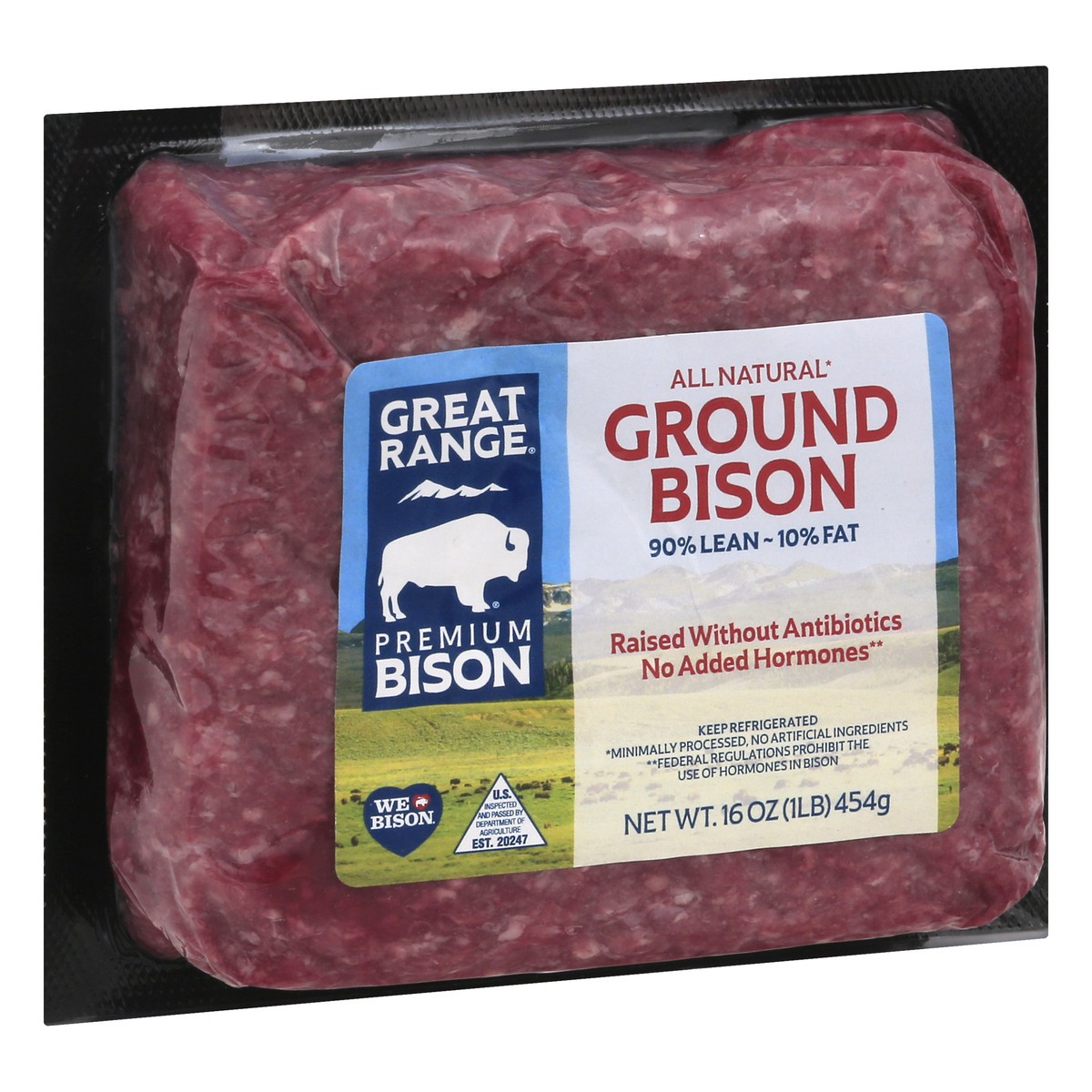 90% lean - 10% fat. Premium bison. All natural (Minimally processed, no artificial ingredients). Raised without antibiotics. No added hormones (Federal regulations prohibit the use of hormones in biso…