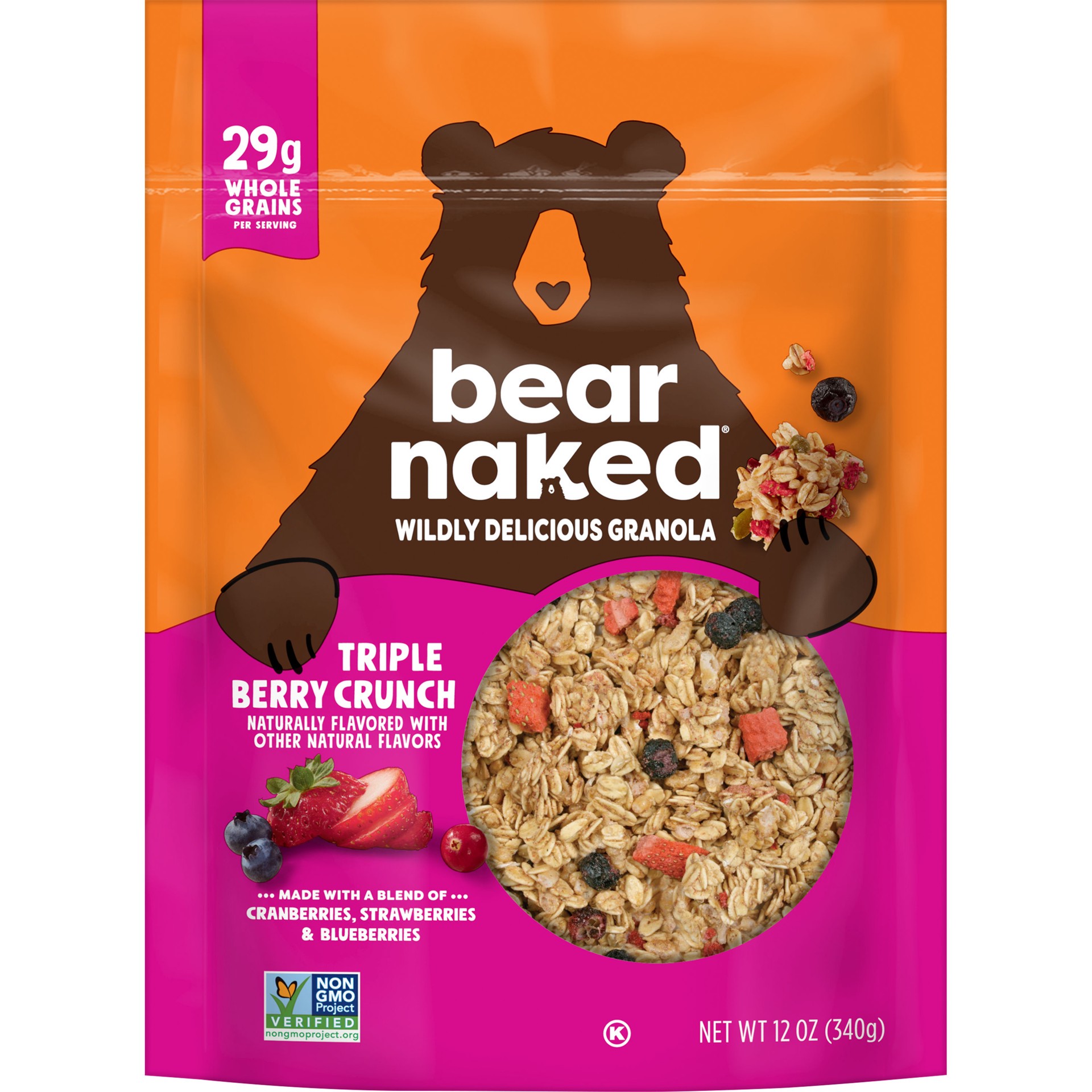Every bag of granola starts with us foraging for irresistible flavors and bountiful chunks of goodness. Bear Naked Triple Berry Crunch granola blends together whole grain oats with the best of the ber…