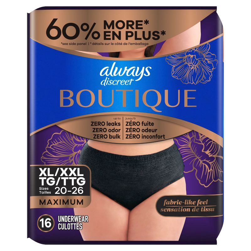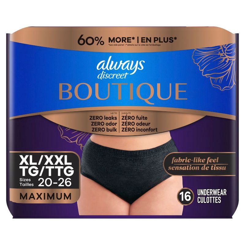 Always Discreet Boutique Black Maximum Underwear - XL - 16ct