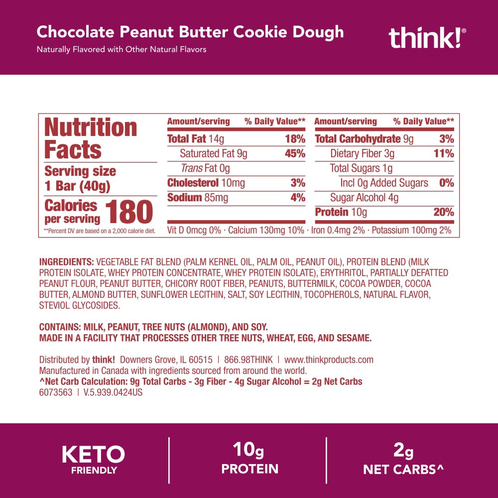 think! Delight Chocolate Peanut Butter Cookie Dough Protein Bar 1.2 oz