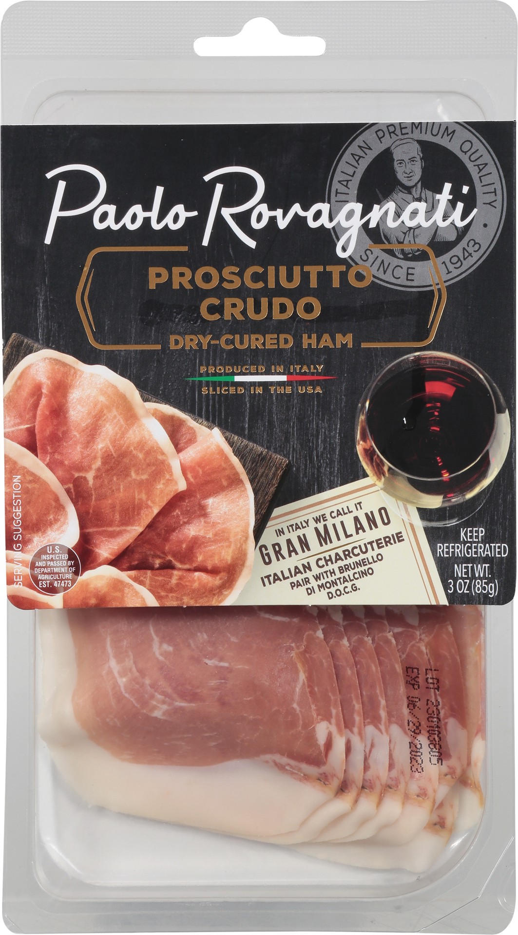 Paolo Rovagnati Prosciutto Crudo Dry-Cured Ham Gran Milano - 3 Oz