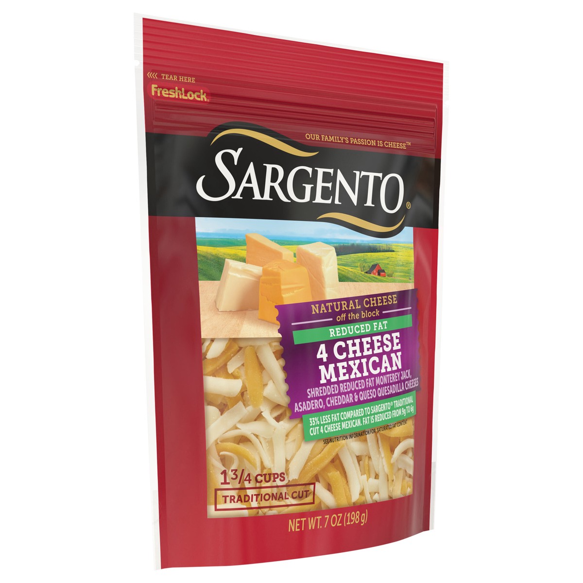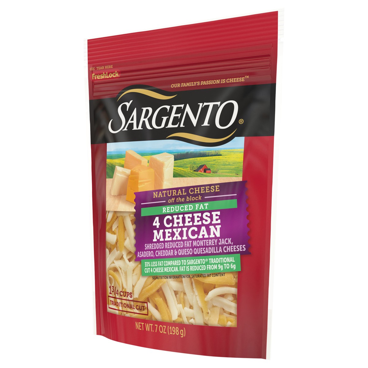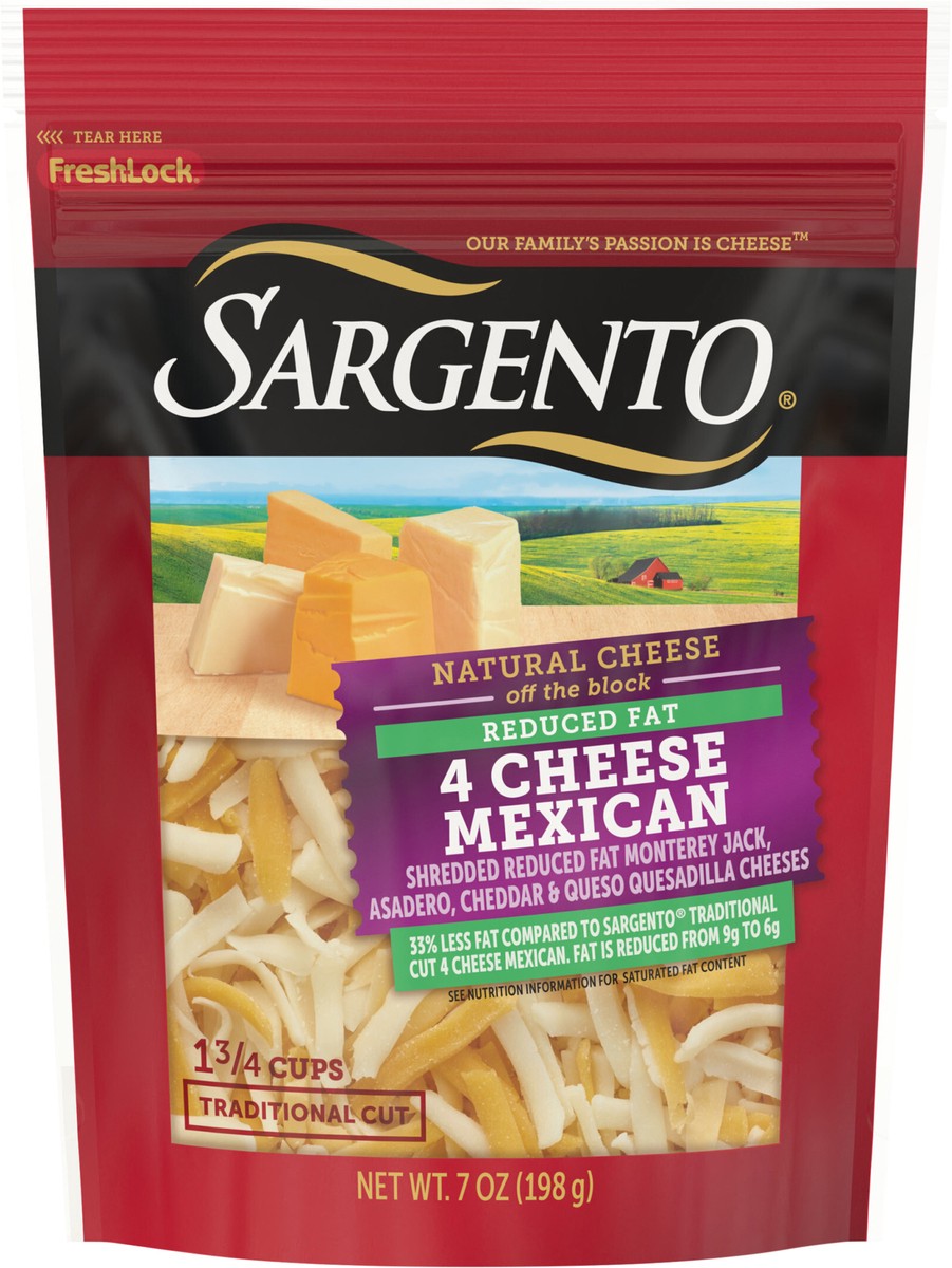 We reduced the fat as compared to Sargento Traditional Cut 4 Cheese Mexican but not the flavor in this quick-melting blend of Monterey Jack, Cheddar, Queso Quesadilla and Asadero Natural cheeses . The…
