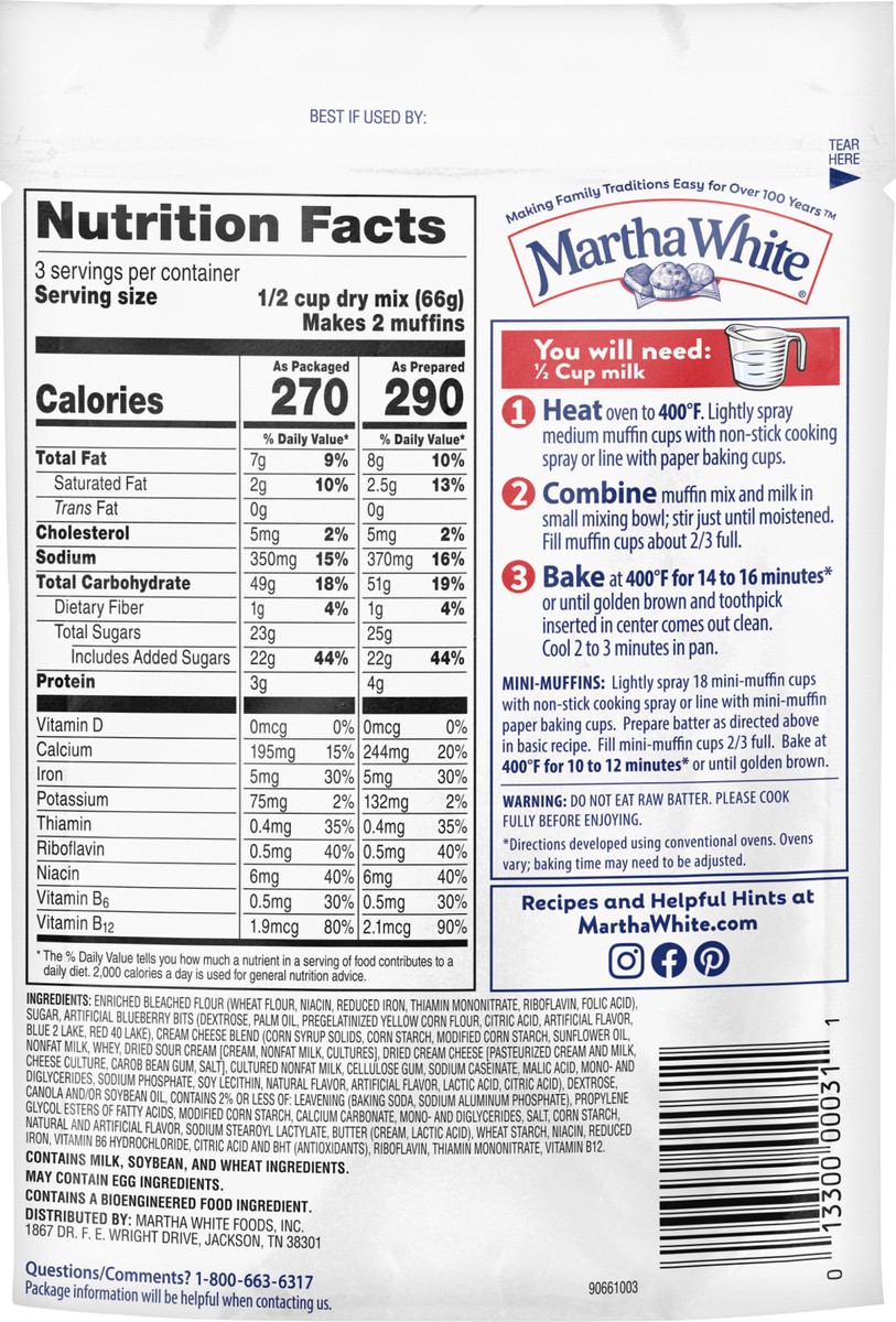 Martha White Blueberry Cheesecake Muffin Mix, 7 Oz Bag