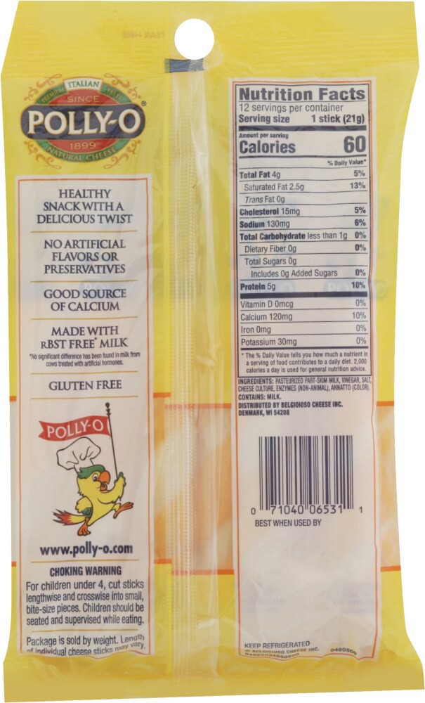 No artificial flavors or preservatives. Per Stick: 60 calories; 2.5 g sat fat (12% DV); 130 mg sodium (6% DV); 0 g total sugars. 5 g of protein per serving. Contains 0 g lactose per serving. See nutri…