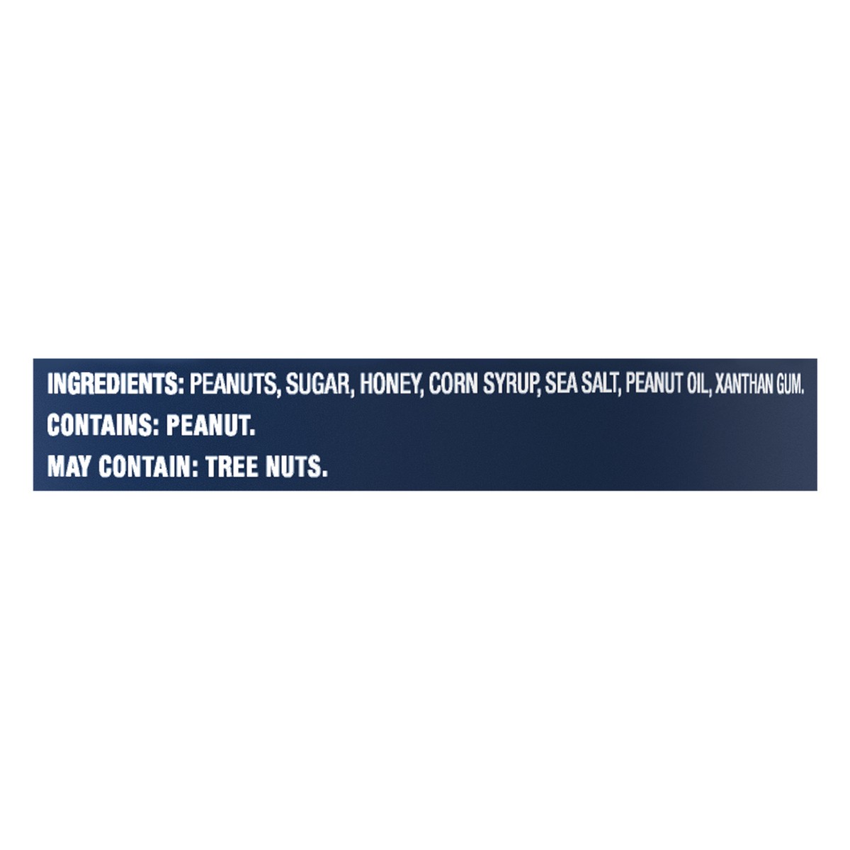Peanuts, Sugar, Honey, Corn Syrup, Sea Salt, Peanut Oil, Xanthan Gum.