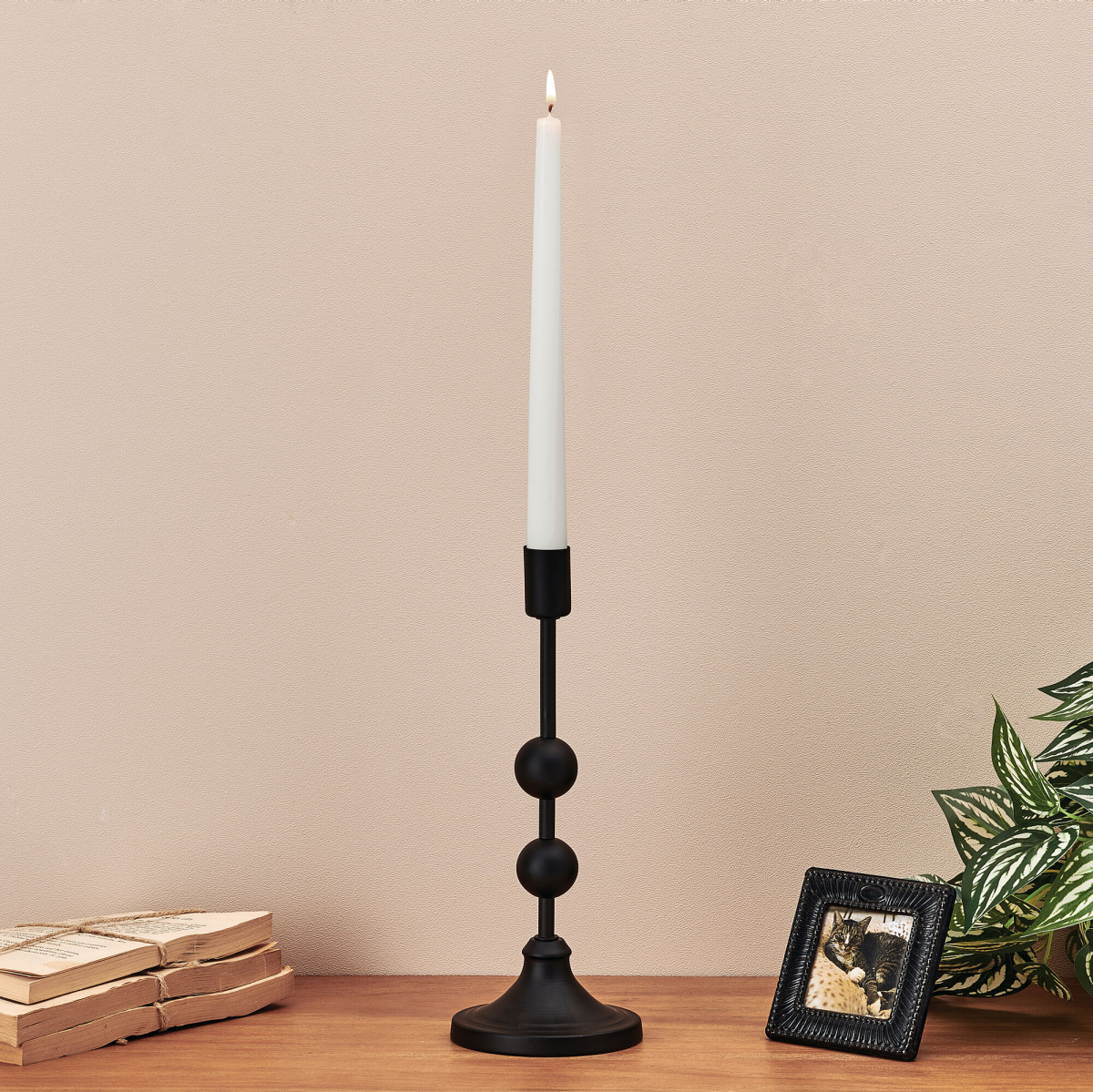 Elements Matte Black Ball Metal Taper Holder 9.5IN
