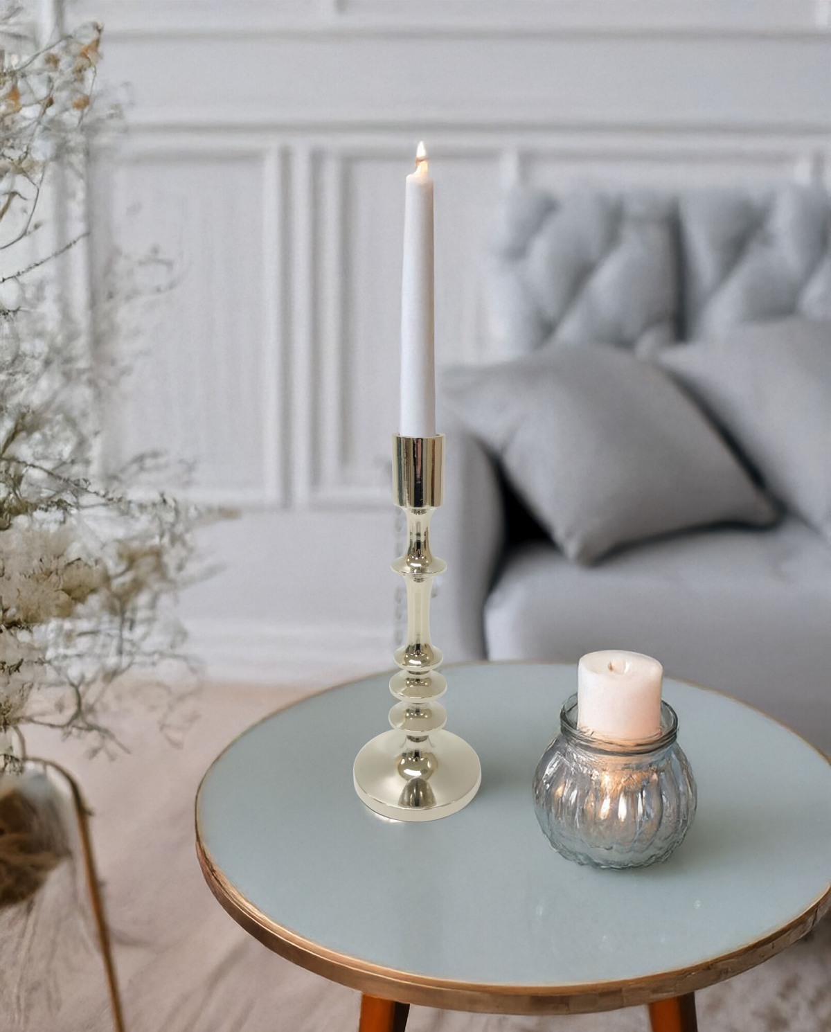 Elements Metal Silver Taper Holder 9 in