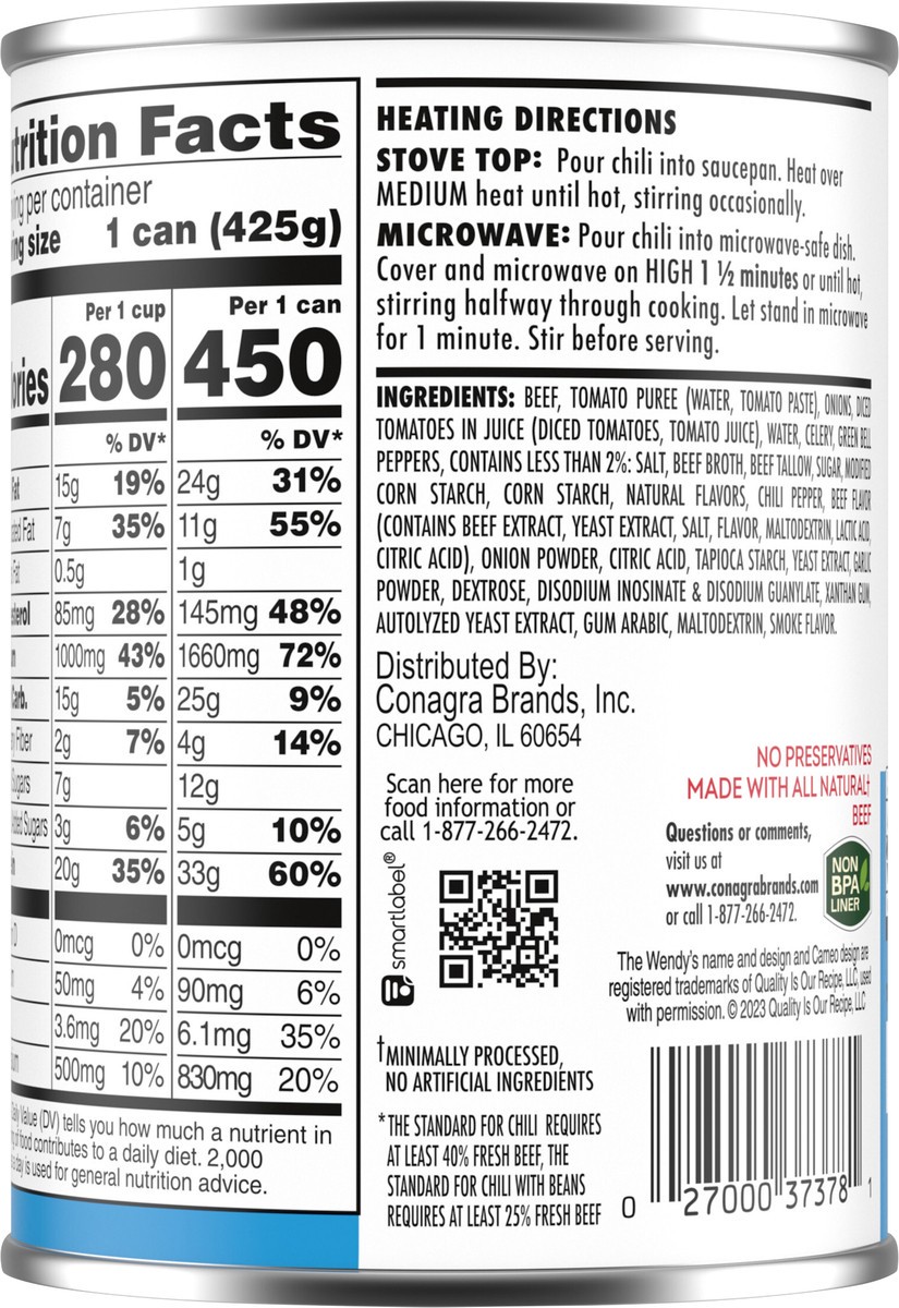 Wendy's Chili No Beans, Canned Chili, 15 Oz - 15 Oz