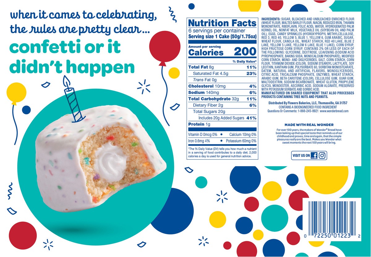- You''ll get one box of Wonder Crème Filled Confetti Cakes with six individually wrapped snack cakes per box
