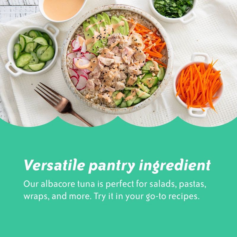 Chicken of the Sea solid white albacore tuna in water is made with premium albacore tuna, perfectly seasoned with salt and packed in water for a pure, clean, mild flavor. It is high in protein and fea…