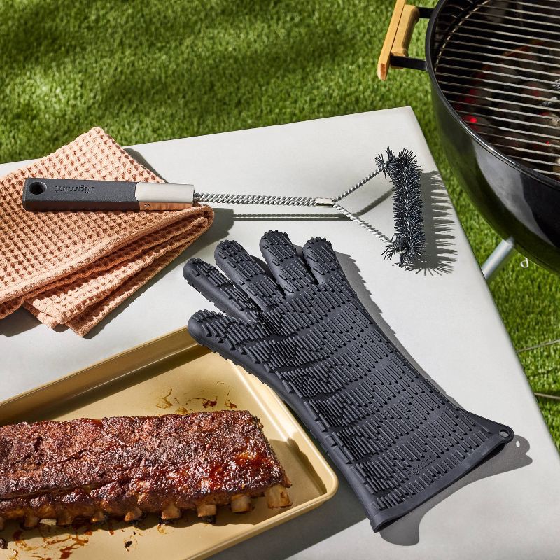 Protect your hands while cooking or grilling with this Grilling Mitten Black from Figmint™. Made of silicone, this grill mitten features raised edges that help distribute heat across the surface and p…