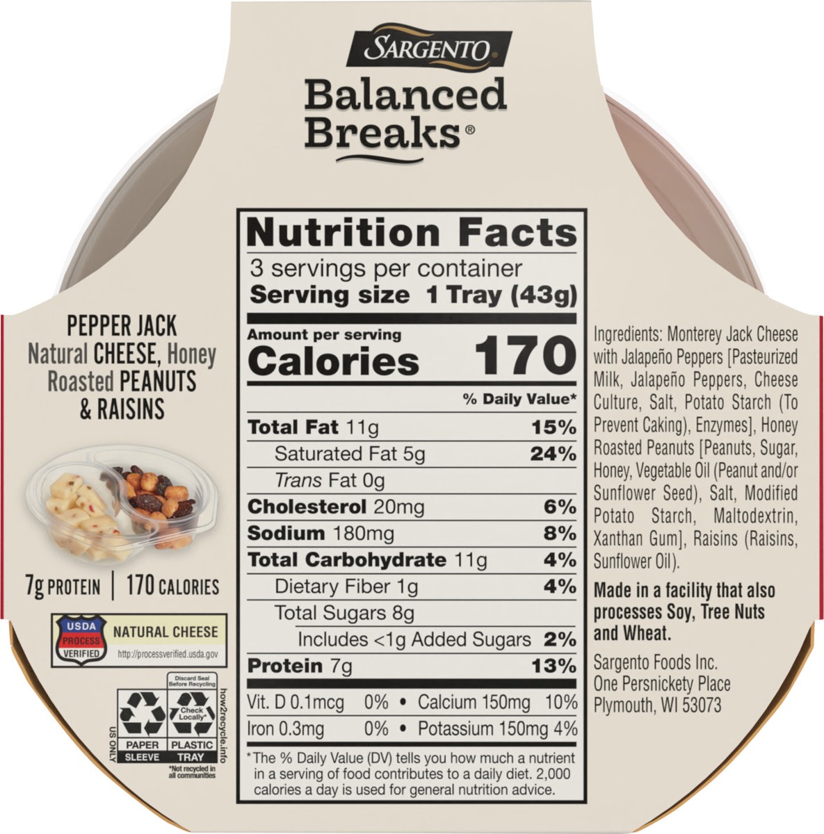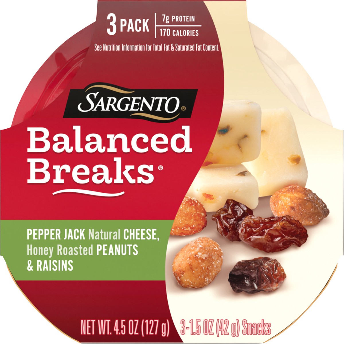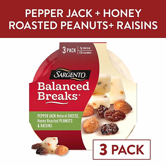 Sargento Balanced Breaks Pepper Jack Natural Cheese Honey Roasted Peanuts And Raisins - 3-1.5 Oz