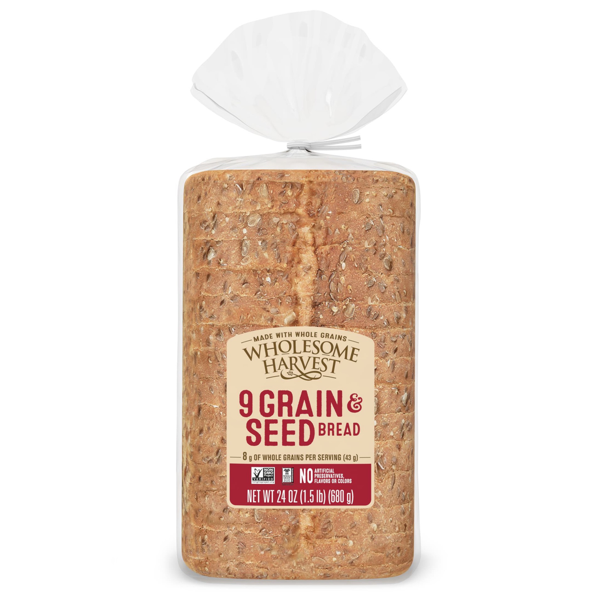 A distinctive blend of whole wheat, oat and rye flours, crunchy flax, sunflower and sesame seeds makes Wholesome Harvest 9 Grain & Seed Bread a richly flavored, hearty textured loaf the whole family w…