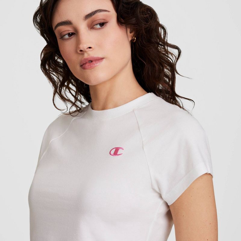 Champion Women's Iconic Essentials Raglan Short Sleeve Baby T-Shirt - White XL