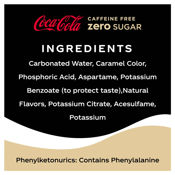Carbonated Water\, Caramel Color\, Phosphoric Acid\, Aspartame\, Potassium Benzoate (to Protect Taste)\, Natural Flavors\, Potassium Citrate\, Acesulfame Potassium.