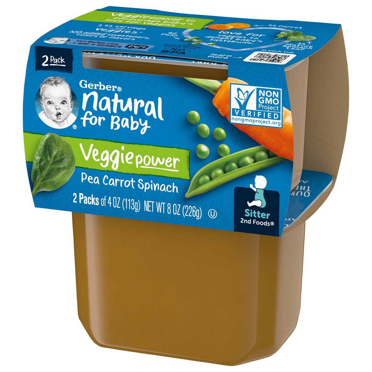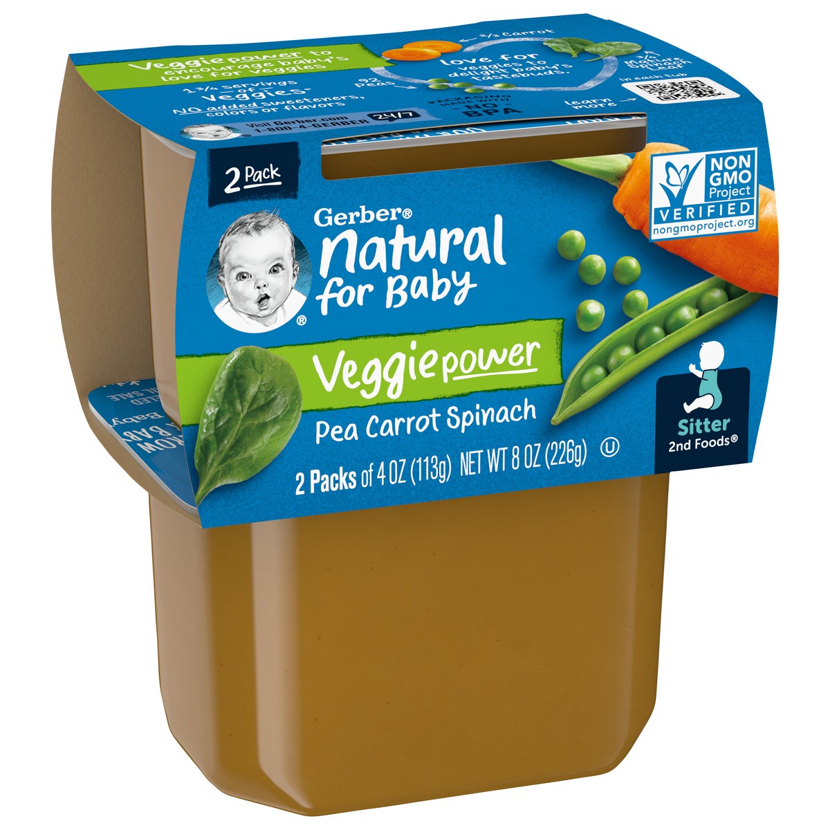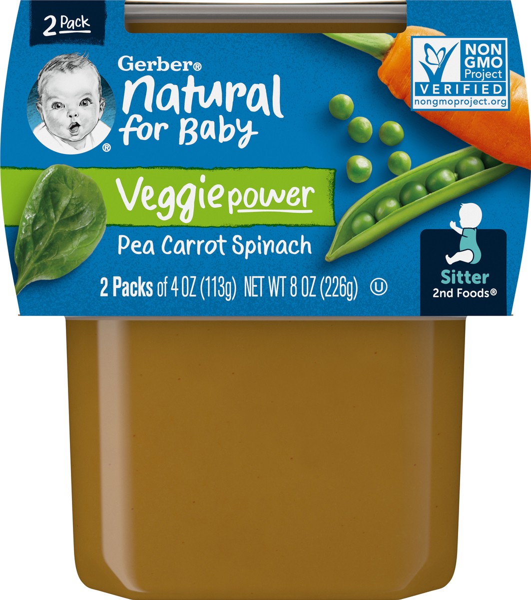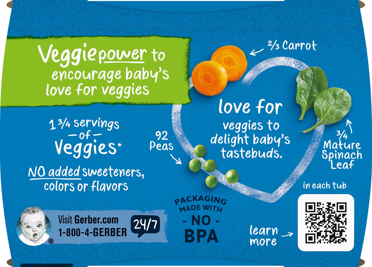 Gerber Stage 2 Baby Food, Pea Carrot Spinach Puree Tubs, Baby Puree, 16PK
