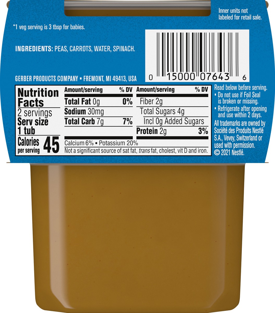 Gerber Stage 2 Baby Food, Pea Carrot Spinach Puree Tubs are a premium choice for your child''s early stages. Crafted to help support their nutritional needs, along with meeting the busy lifestyle need…