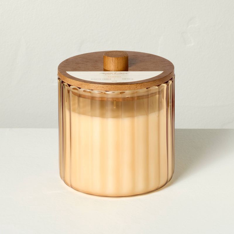 Hearth & Hand with Magnolia 2 Wick Glass with Wooden Lid Pampas Jar Candle Tan 12oz - Hearth & Hand™ with Magnolia
