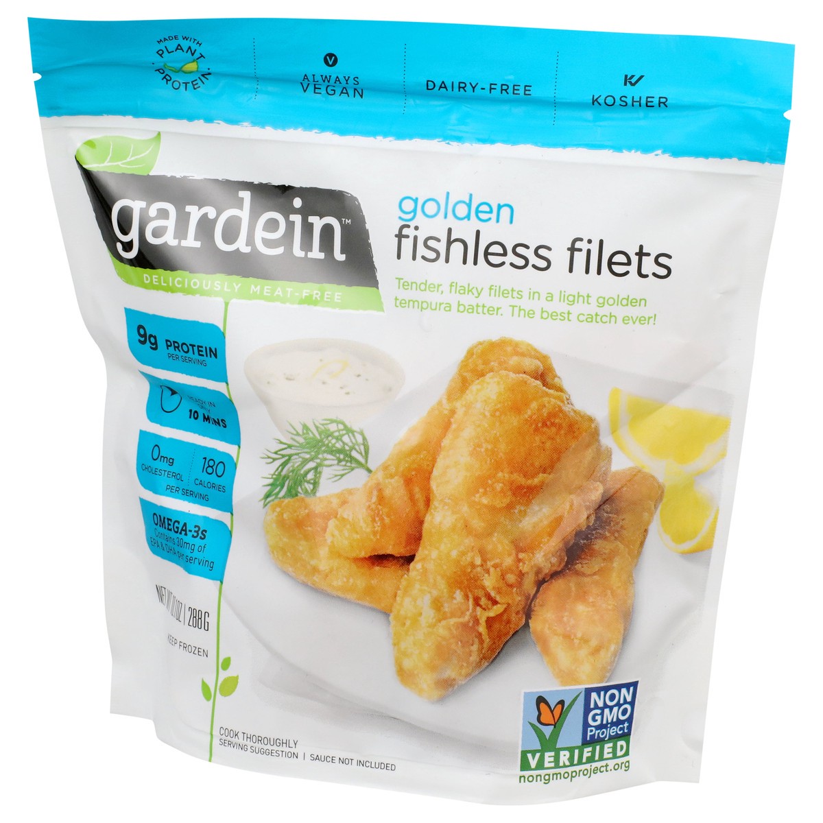 Discover how delicious meatless can be with Gardein Plant-Based F'sh Golden Fishless Filets. Crispy and savory, these frozen meatless alternatives to fish filets are flaky and swimming in flavor for a…
