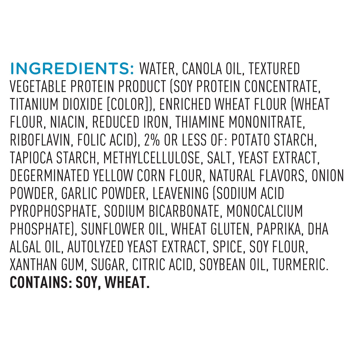 Water, Canola Oil, Textured Vegetable Protein Product (Soy Protein Concentrate, Titanium Dioxide [Color]), Enriched Wheat Flour (Wheat Flour, Niacin, Reduced Iron, Thiamine Mononitrate, Riboflavin, Fo…