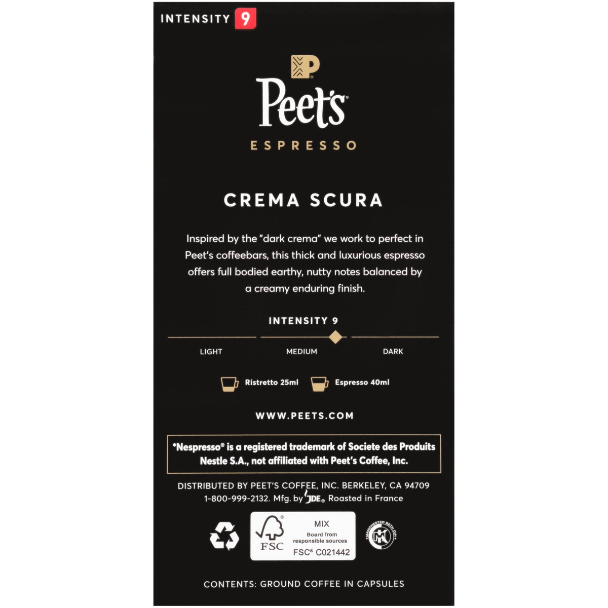 Peet's Coffee Crema Scura Medium Roast Capsules - 10 ct