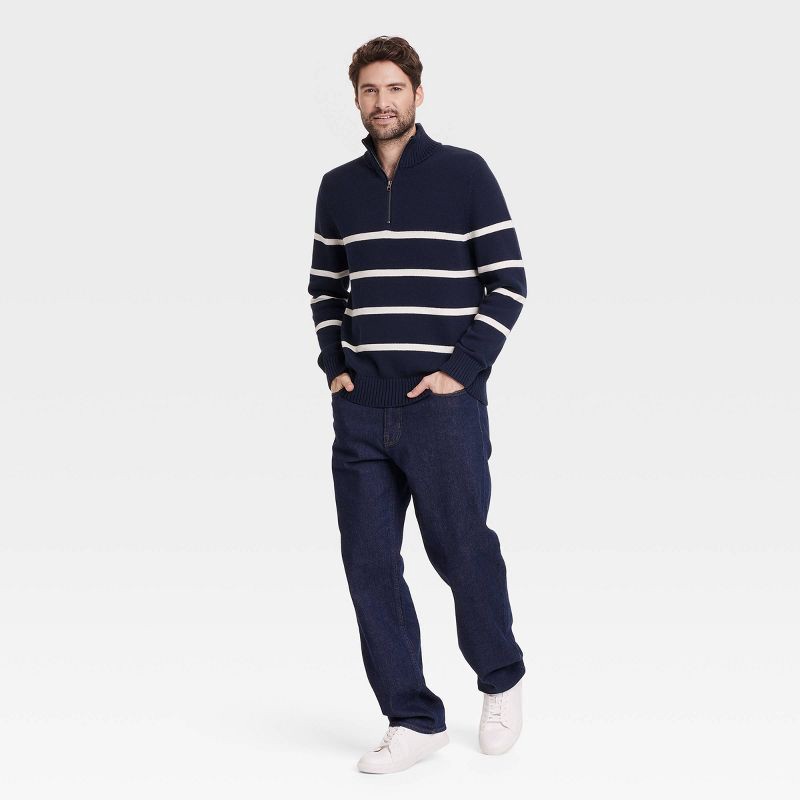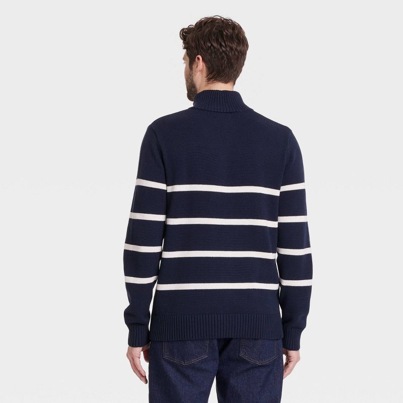 Bring an on-trend update to your cool-weather wardrobe with this Turtleneck Quarter-Zip Sweater from Goodfellow & Co™. Made from midweight jersey fabric with stretch, this long-sleeve sweater offers c…