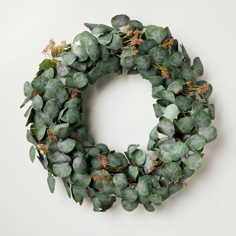 Capture the magic of the festive season with this Eucalyptus Artificial Wreath from Hearth & Hand™ with Magnolia. Made of polyester, this Christmas wreath features faux eucalyptus leaves beautifully a…