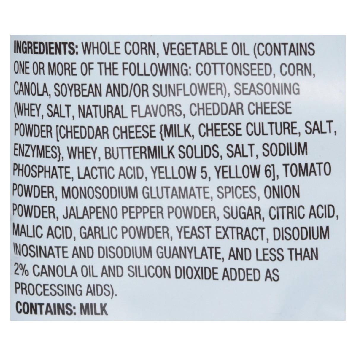 Whole Corn, Vegetable Oil (Contains One or More of the Following: Cottonseed, Corn, Canola, Soybean, and/or Sunflower), Seasoning (Whey, Salt, Natural Flavors, Cheddar Cheese Powder [Cheddar Cheese (M…