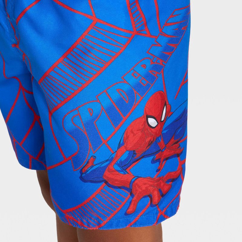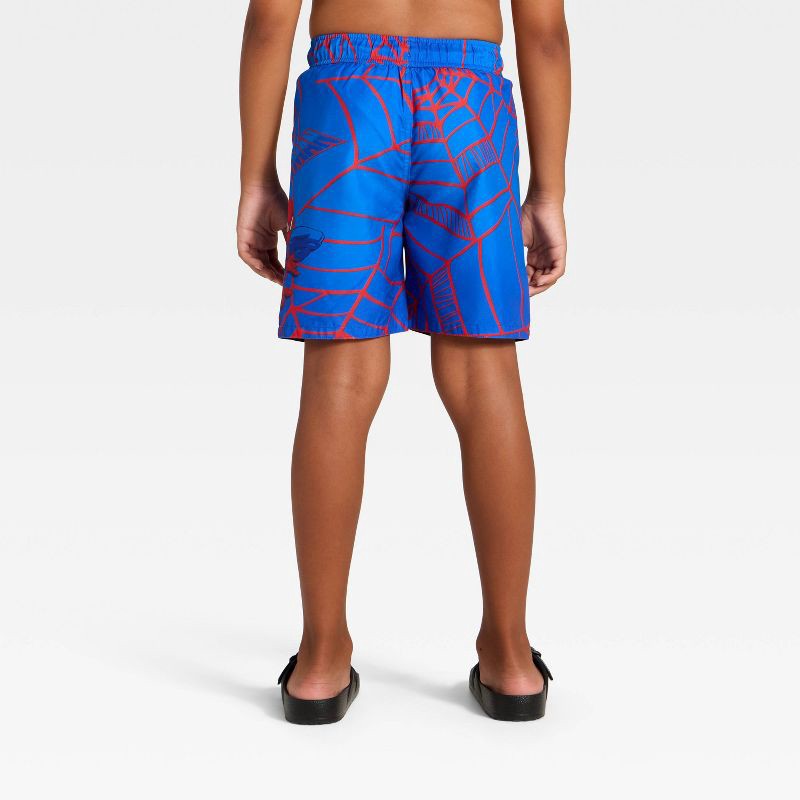 Your kid can bring their favorite web-slinger to the beach or pool with these Spider-Man Swim Shorts. Woven from polyester fabric, these swim shorts are designed in blue with allover red webs plus a S…