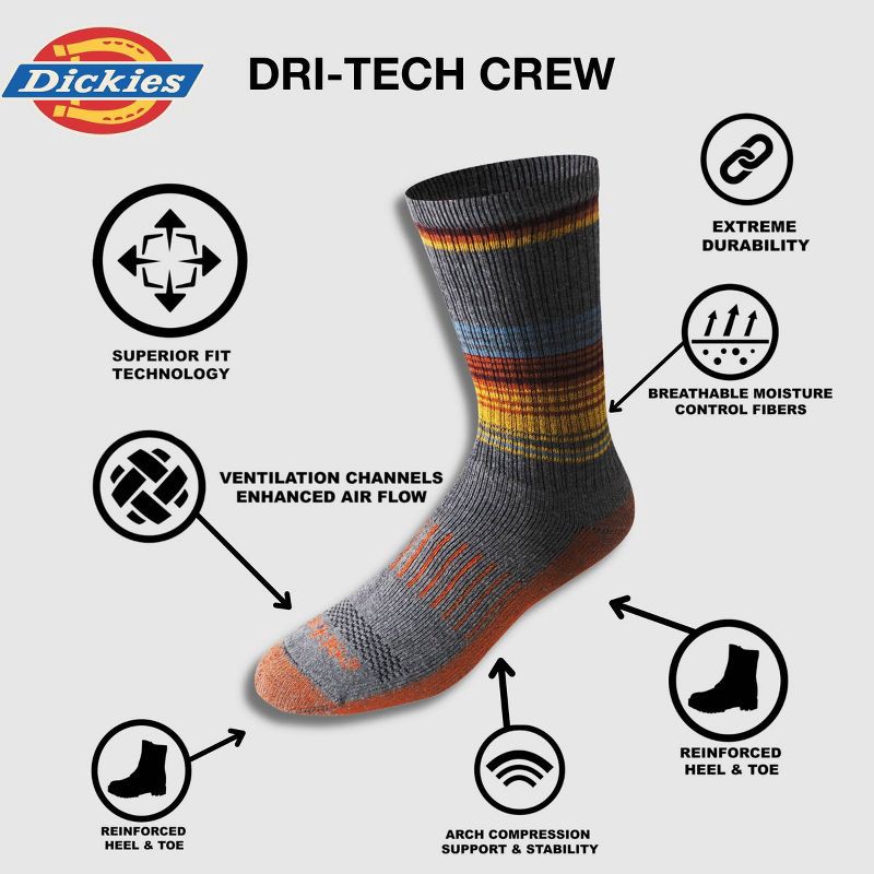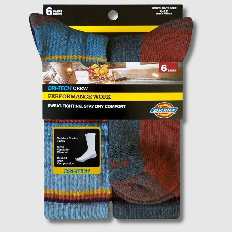 Dickies Men's 6pk Moisture Control Crew Socks - Gray 6-12: Cotton-Polyester Blend, Tagless, Midweight Knit, Machine Washable