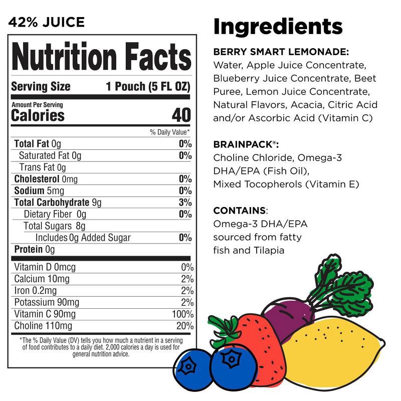 - DELICIOUS JUICE WITH BRAIN NUTRITION: Brainiac's Berry Beet Lemonade is a refreshing take on traditional lemonade, while delivering key nutrients that support brain development (Omega-3 DHA and Choline) and a little bit of veggies for good measure