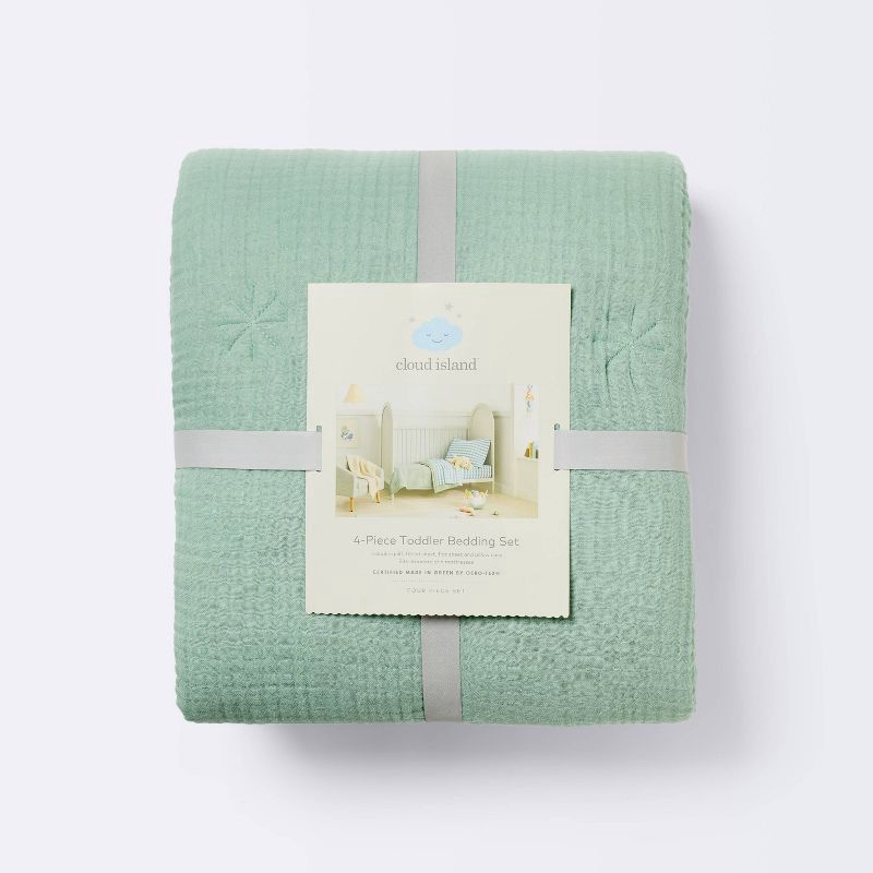 Dress up your little one's room with this 4-Piece Toddler Bedding Set from Cloud Island™. This bedding set includes one quilt, one fitted sheet that fits standard crib and toddler beds, one flat sheet…