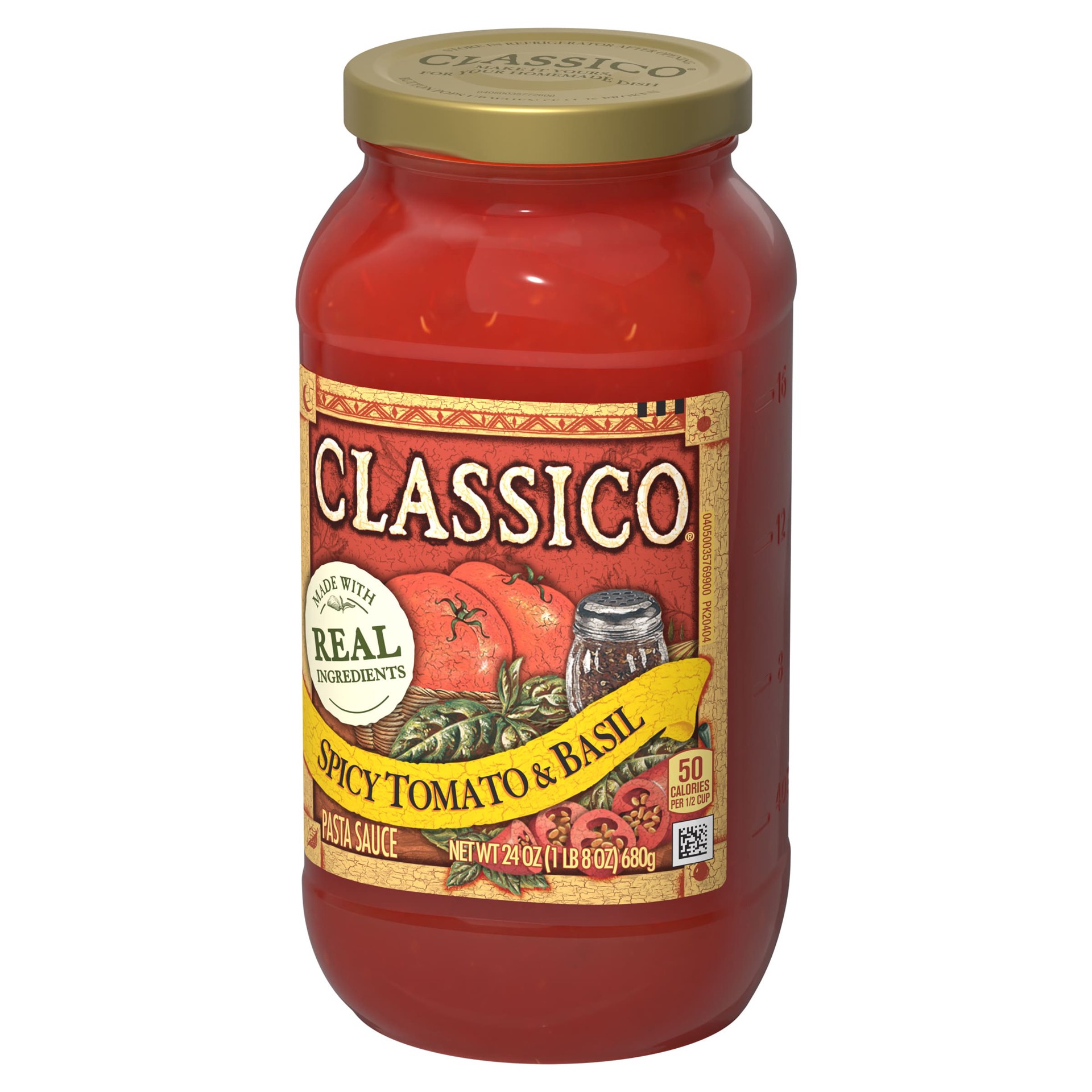 Fragrant basil and red-ripe tomatoes are blended with crushed red pepper in our lively, spirited sauce. Create your next homemade meal with Classico Spicy Tomato & Basil Pasta Sauce. Our sauce is easy…