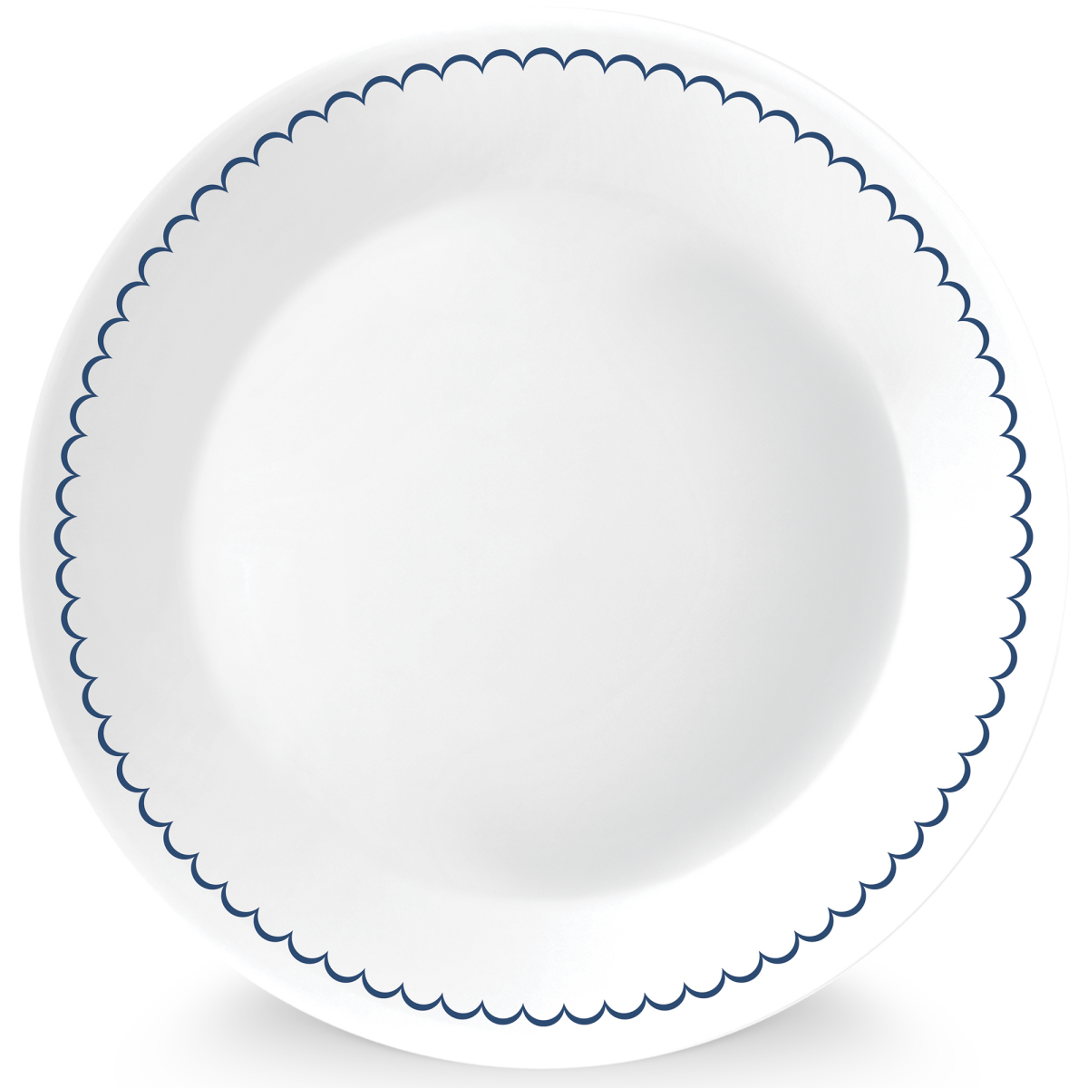 Crisp cottage textiles with delicate scalloped trim brings a gentle charm to this salad plate. Dishes in clean white with navy detailing feel airy and relaxed, and the perfect color palette for any se…