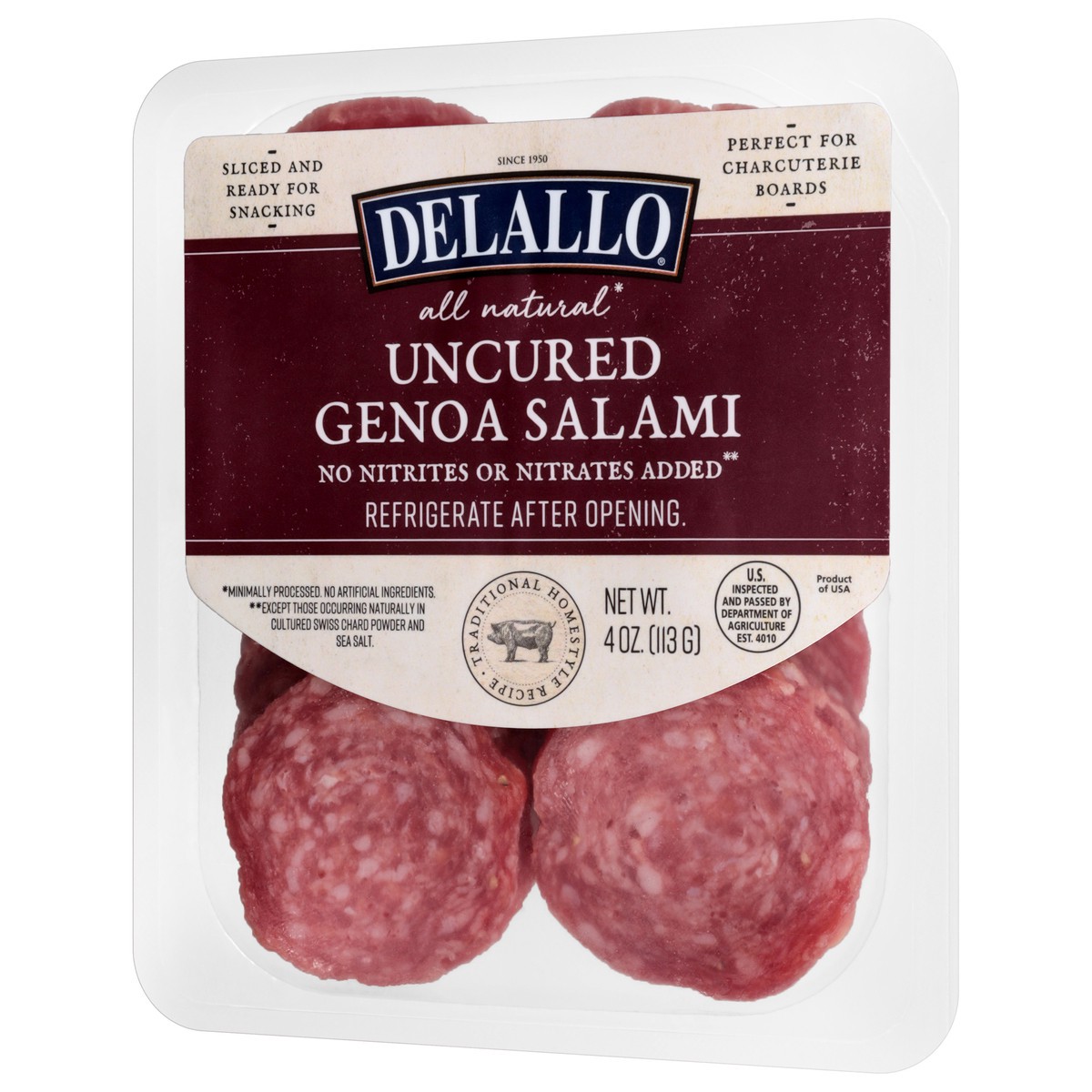 Delallo All-Natural Uncured Genoa Salami is a naturally cured Italian-style salumi made with top-quality cuts of pork that are specially ground and seasoned with a masterful blend of fresh garlic and …
